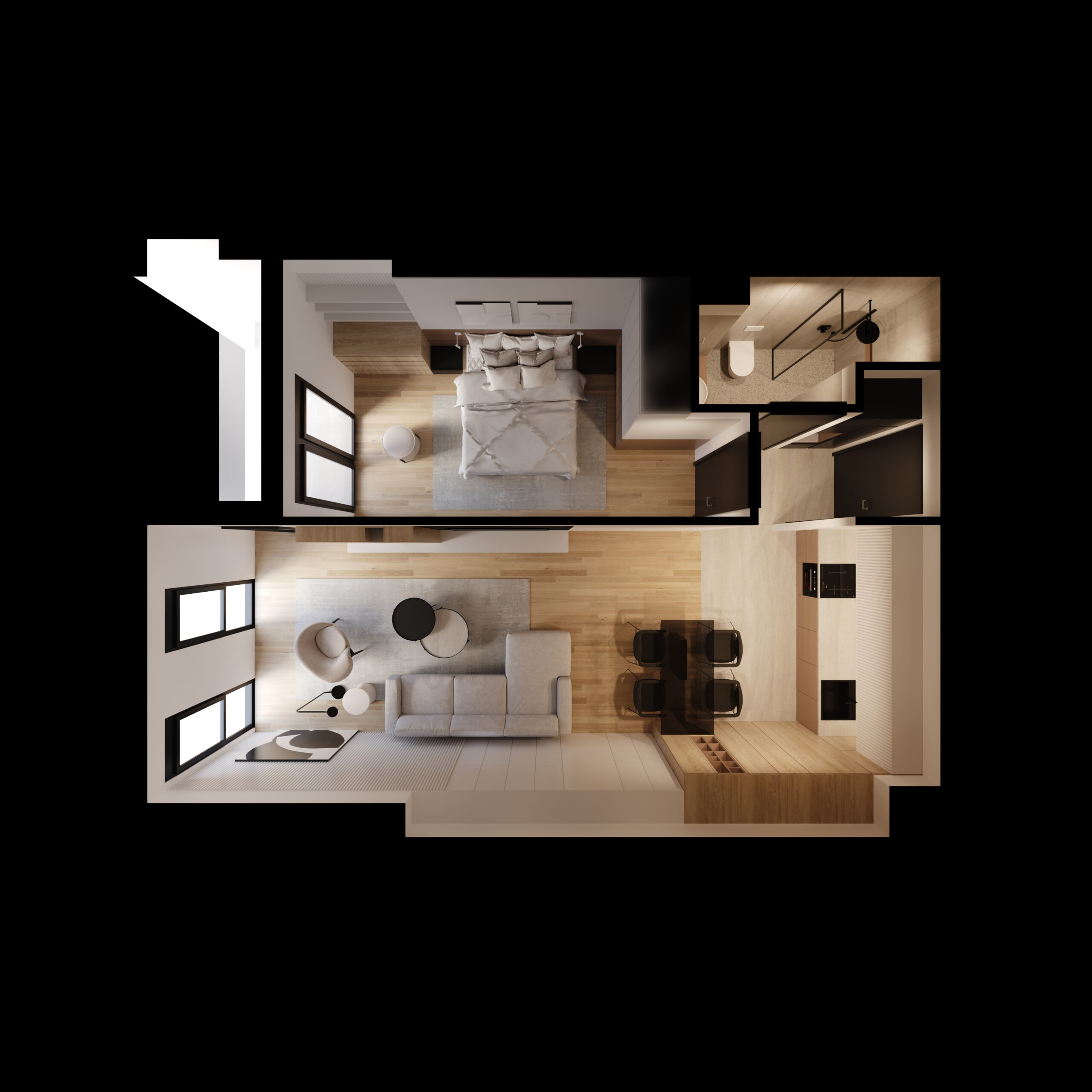 Ky lloj apartamenti është ideal për profesionistë të rinj, studentë ose si një investim për qira afatshkurtra dhe afatgjata. Dizajni minimalist, ngjyrat neutrale dhe materialet natyrore krijojnë ndjesinë e një shtëpie moderne, por komode.