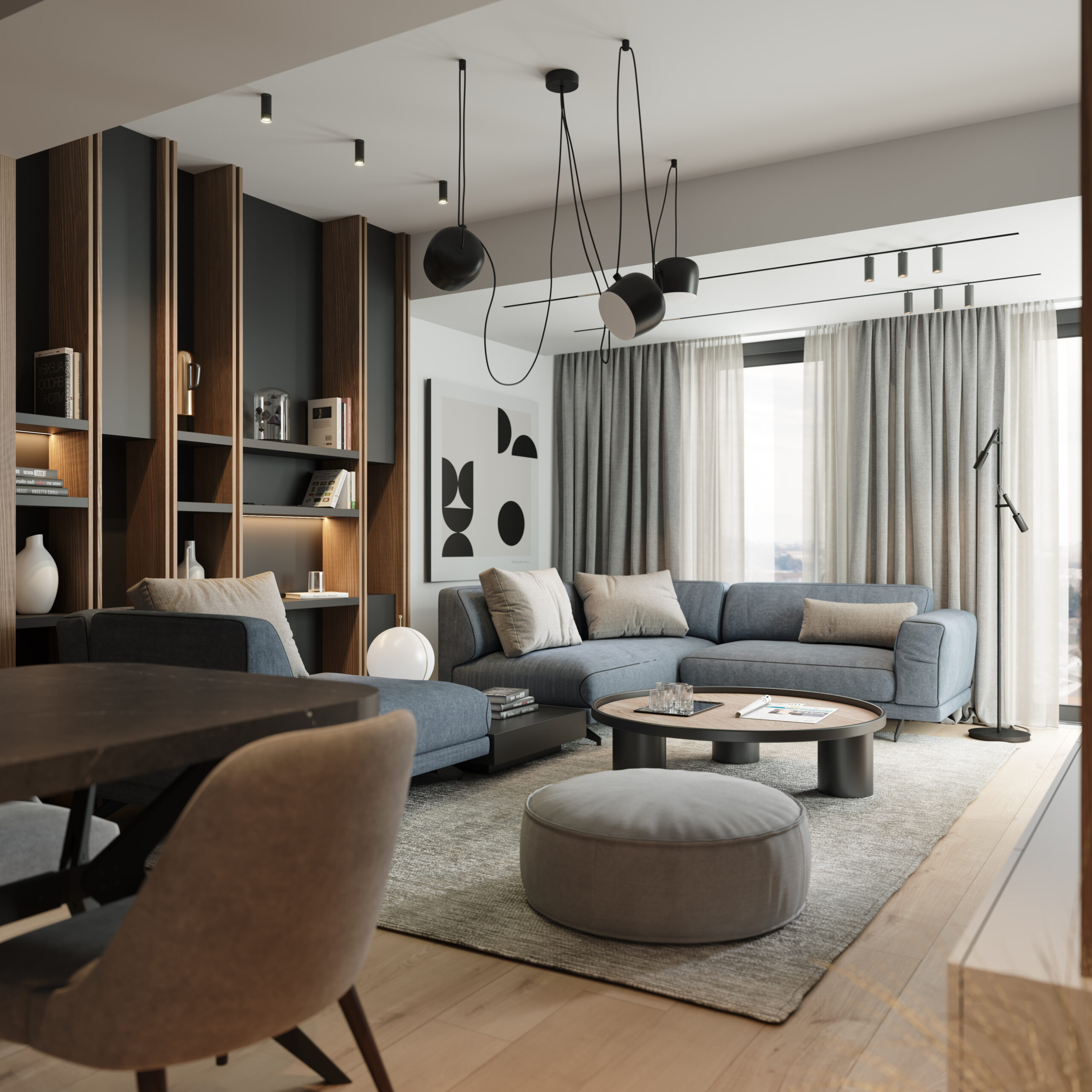 Një planimetri e ekuilibruar në mënyrë të përkryer për familjet ose ata që duan më shumë hapësirë ​​- ky apartament me tre dhoma gjumi kombinon dizajnin bashkëkohor, funksionalitetin dhe ngrohtësinë e shtëpisë.