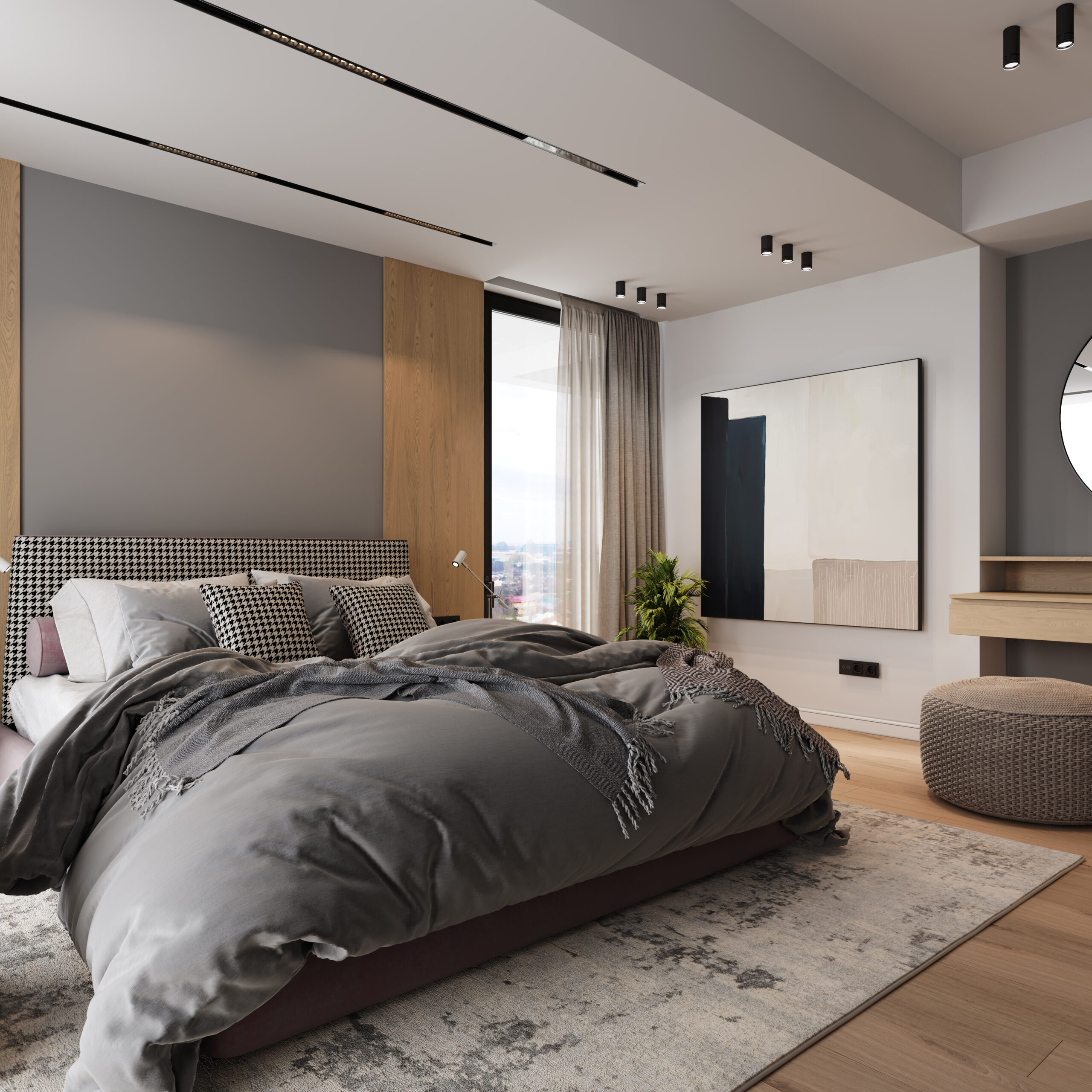 • Dhoma gjumi kryesore me një ambient intim, dritë natyrale dhe qasje të drejtpërdrejtë në një tarracë – oazin tuaj personal të paqes.