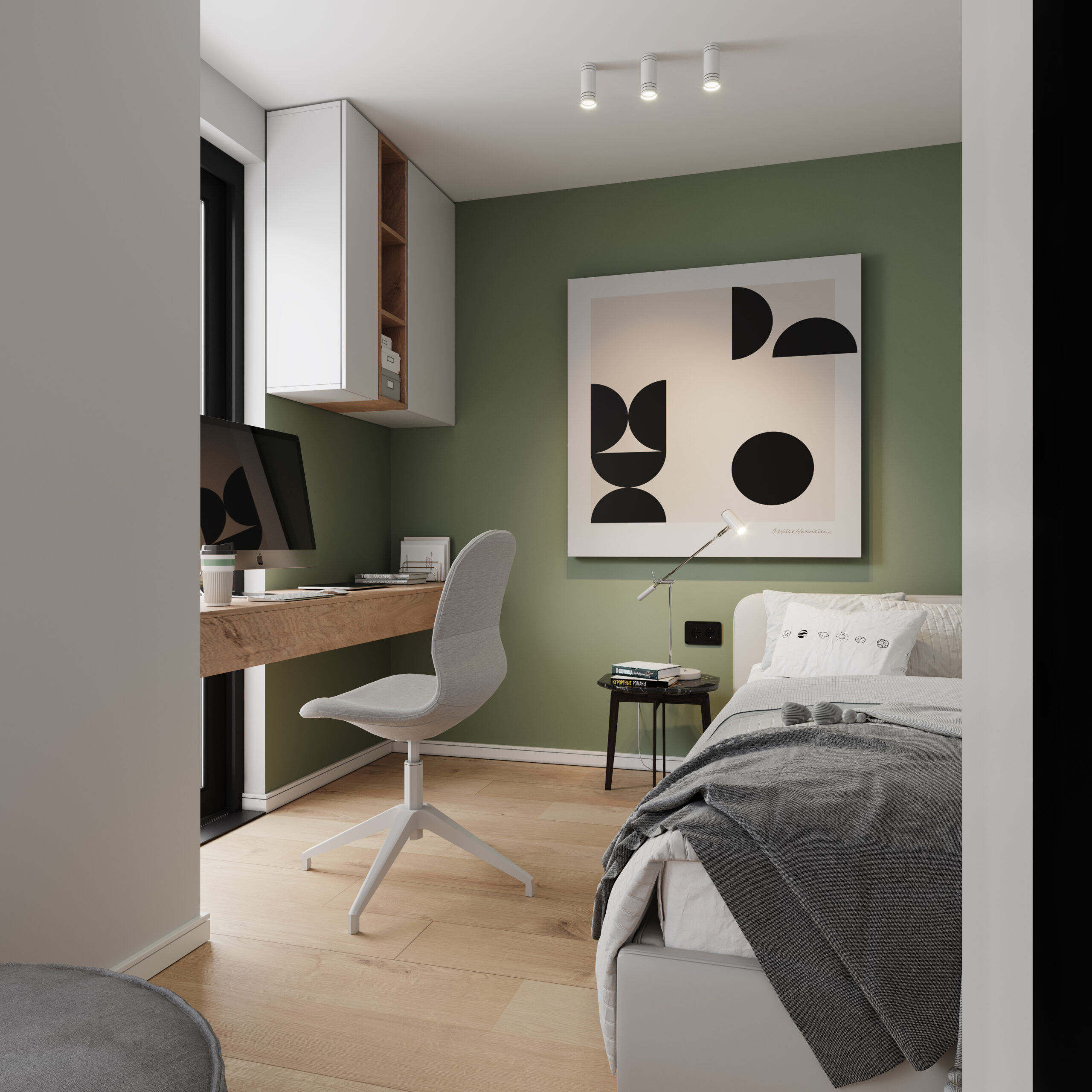• Dy dhoma gjumi, njëra prej të cilave është ideale si dhomë për fëmijë, studio ose mysafirë. Të dyja ofrojnë rehati, dritë natyrale dhe një ndjenjë privatësie.