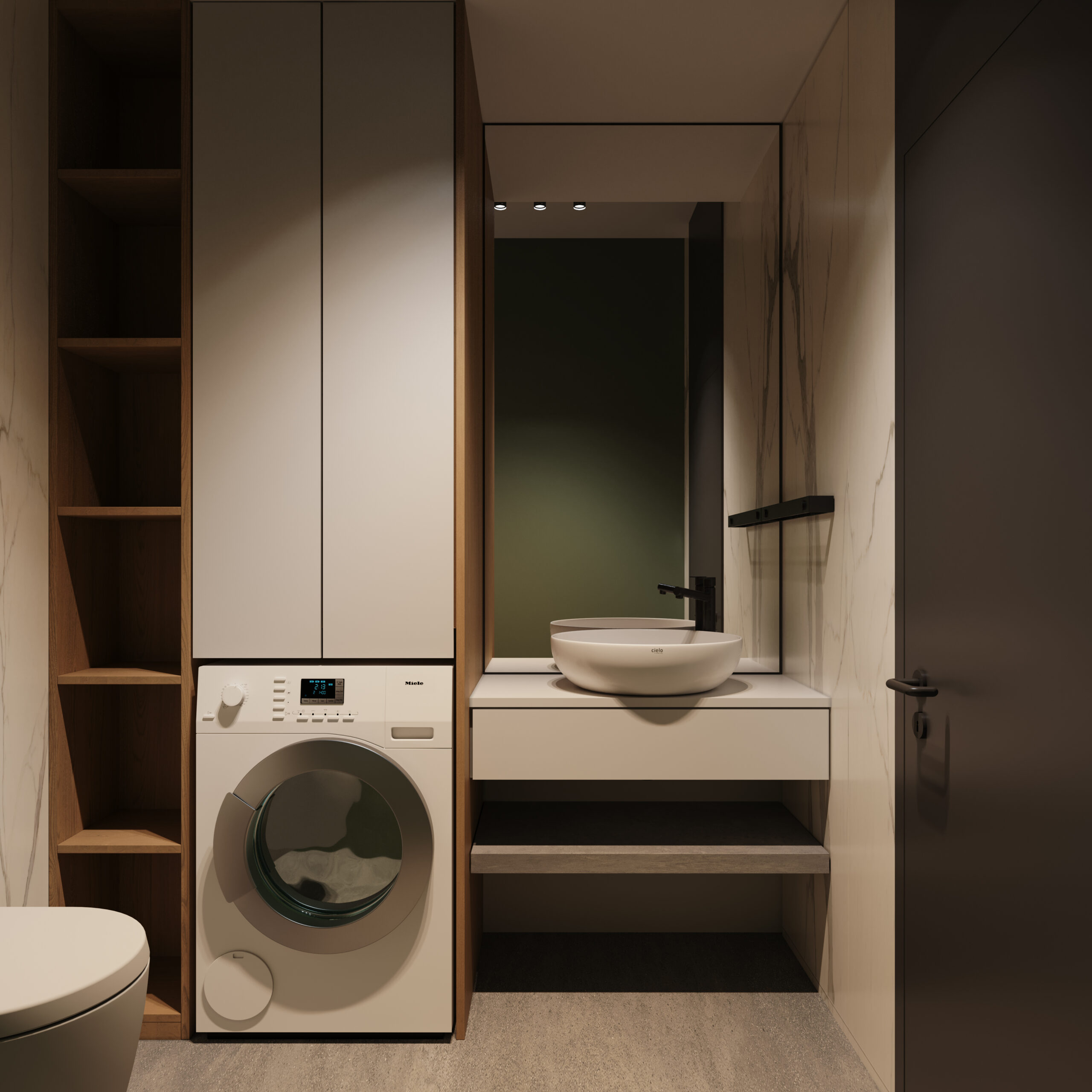 Dizajni kombinon praktikën dhe estetikën, me tone neutrale, materiale cilësore dhe hapësirë ​​të përdorur me zgjuarsi. Ky apartament ofron gjithçka që ju nevojitet për një jetë të përditshme të rehatshme pranë gjelbërimit, por edhe një puls urban.