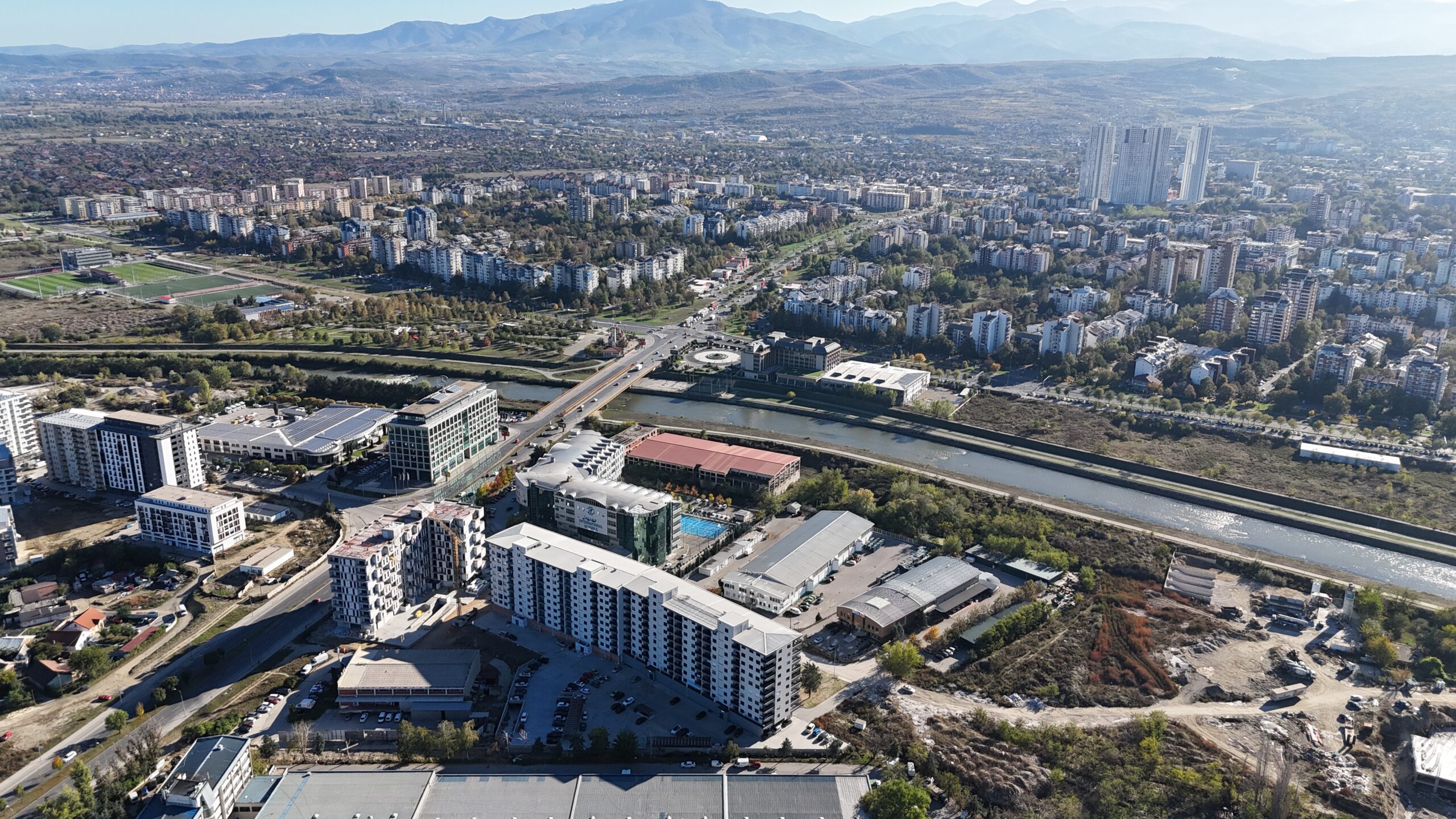 Одбравме една од најдобрите локации во Скопје, надвор од целиот градски метеж, но сепак на 5km од центарот на градот. Со непосреден излез на булевар, за неколку минути стигате до трговски центри, маркети, училишта, детски градинки, додека за сите што сакаат да рекреираат, веднаш можат да се приклучат на велосипедската/пешачката патека на кеј. Совршена локација за вашиот нов дом.